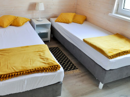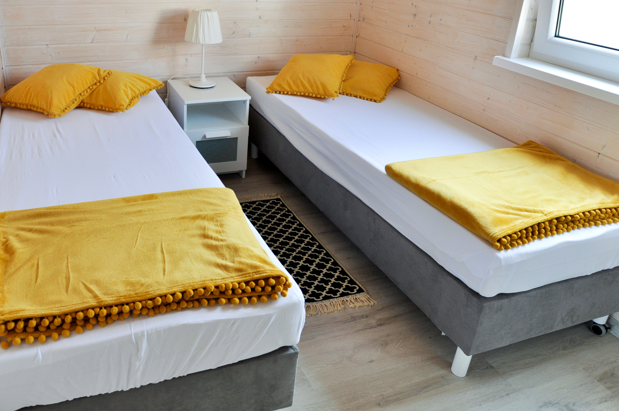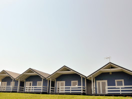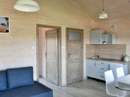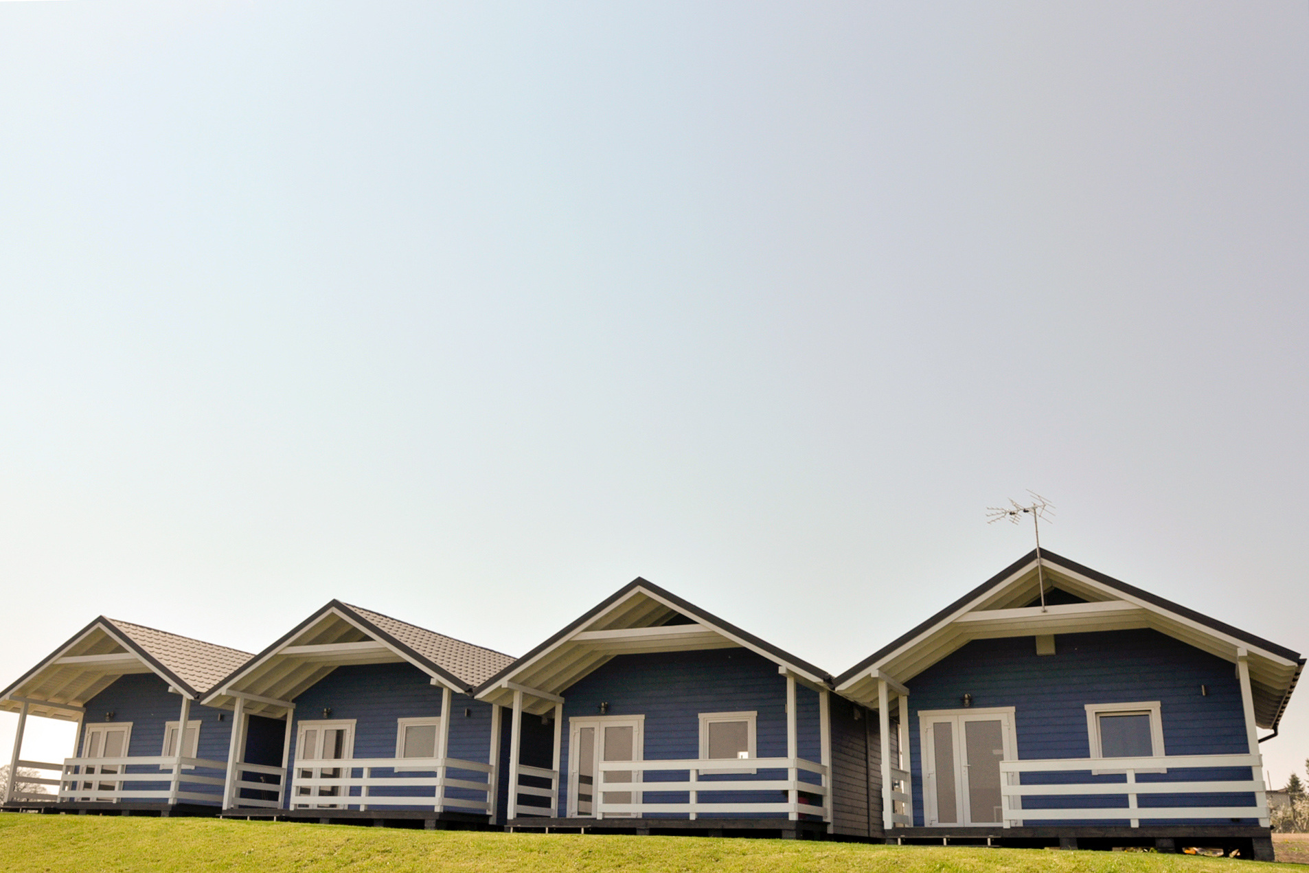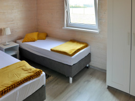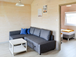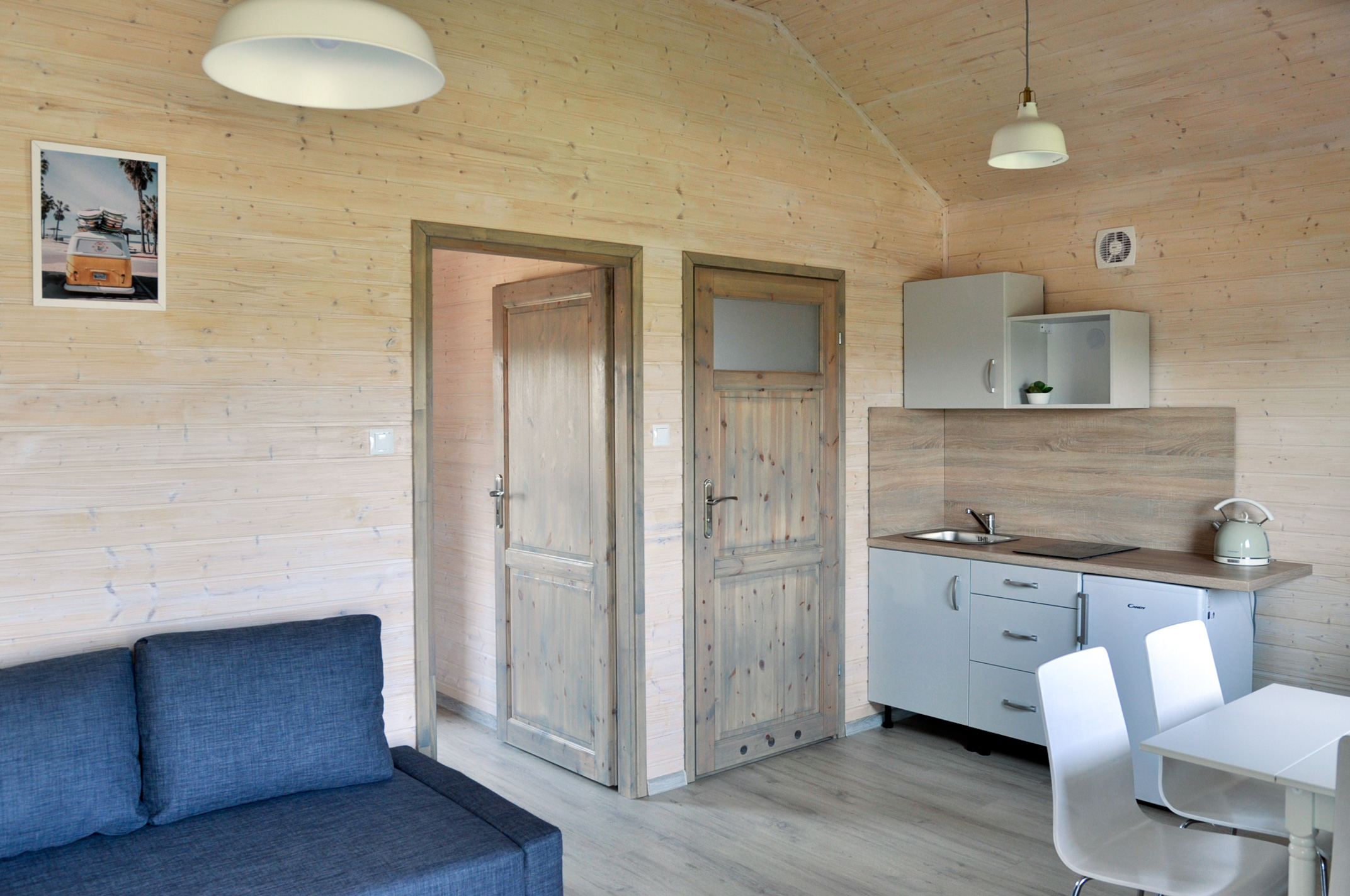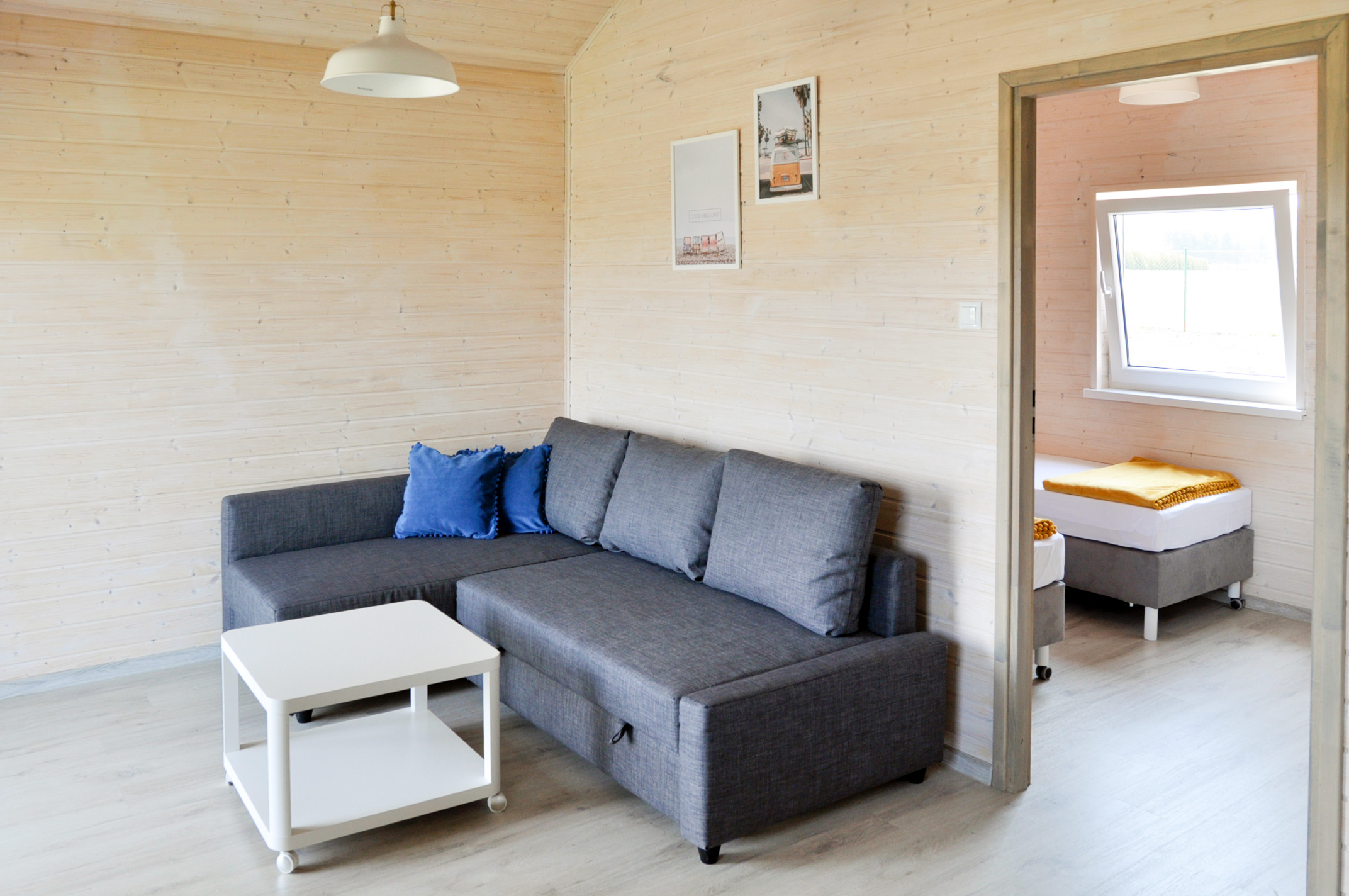 "Niebieskie Żagle" to rodzinne, 4-osobowe, w pełni wyposażone domki letniskowe gwarantujące wypoczynek w przytulnej atmosferze. W każdym domku znajduje się przestronny salon z aneksem kuchennym, sypialnia oraz łazienka. Taki układ zapewnia wygodny pobyt m.in. dla rodzin z dziećmi. Istnieje również możliwość wyposażenia domku w łóżeczko turystyczne czy też krzesełko do karmienia.